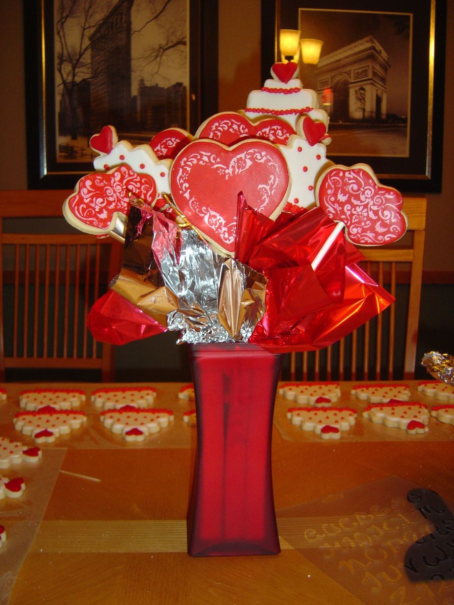 Cookie bouquet for the "cookie table" at a cake-less wedding.