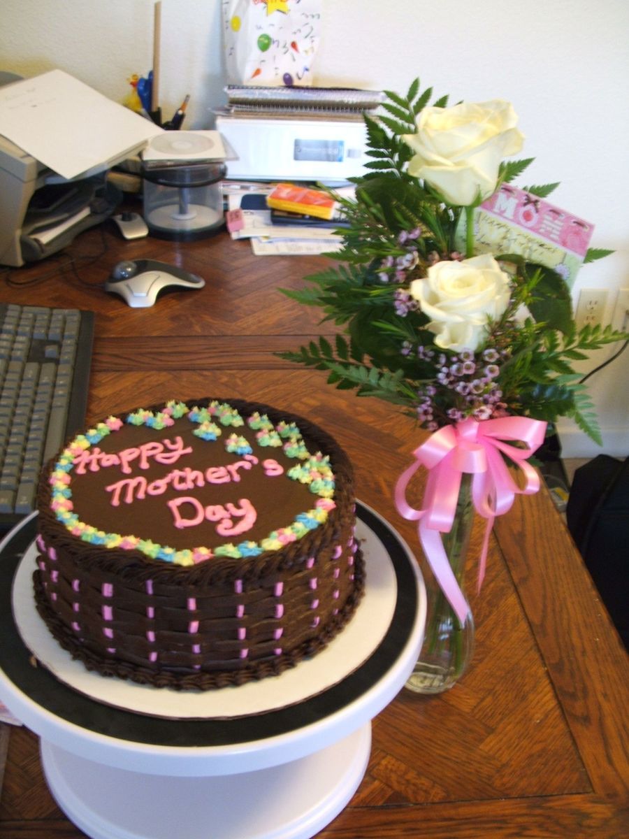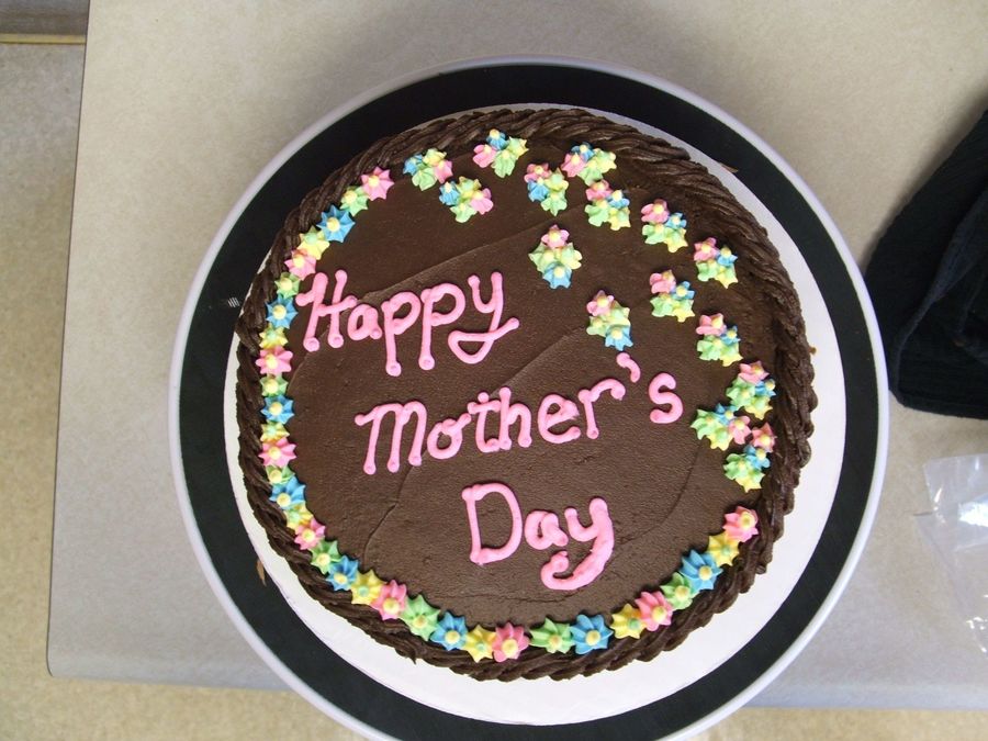 Mother's Day cake for a cookout in honor of the mommy's in the neighborhood. The colors are the favorites from each mommy. The cake is a four layer chocolate, strawberry slices & jam filling. Yummy!