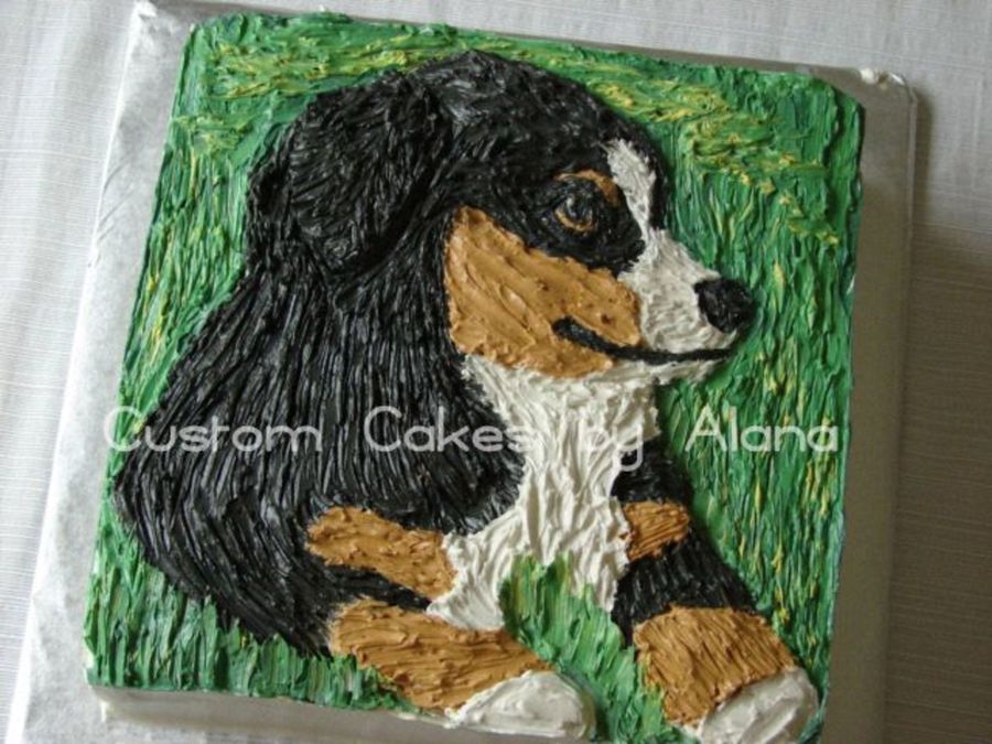 We're having a surprise party for my MIL's 60th birthday today. My FIL asked me to put a Berner on her cake. They breed them. I don't think this is what he was expecting, but I know he'll love it. Hand painted with buttercream. First time trying this technique. It was loads of fun! I love that I could created depth in the picture by actually adding depth, rather than trying to shade everything. I'm really happy with how this came out.