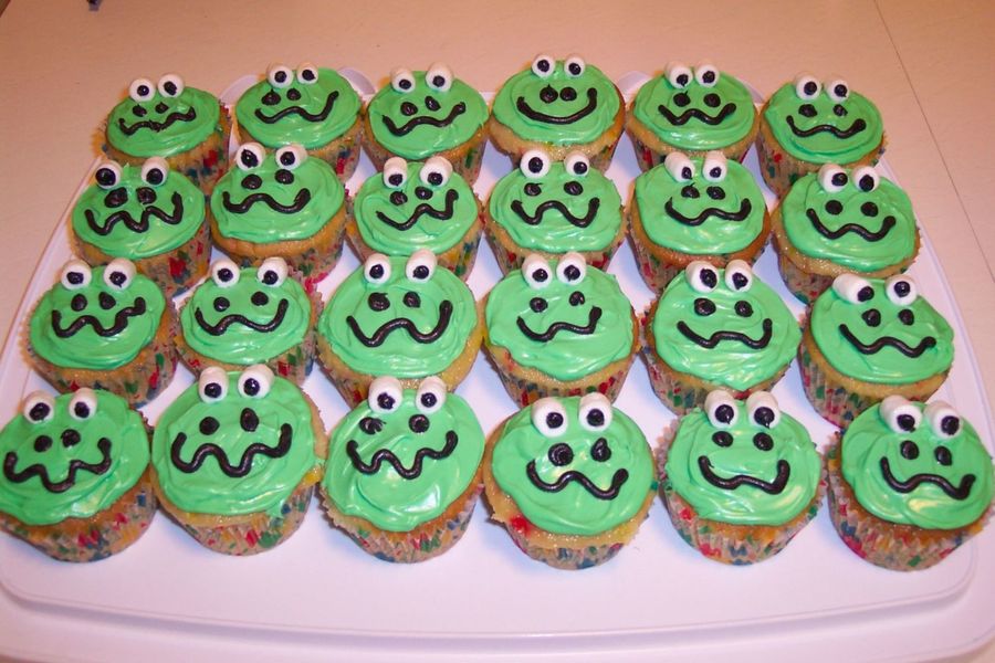 Frog cupcakes created to accompany frog birthday cake.