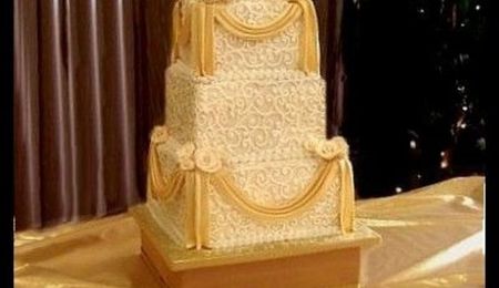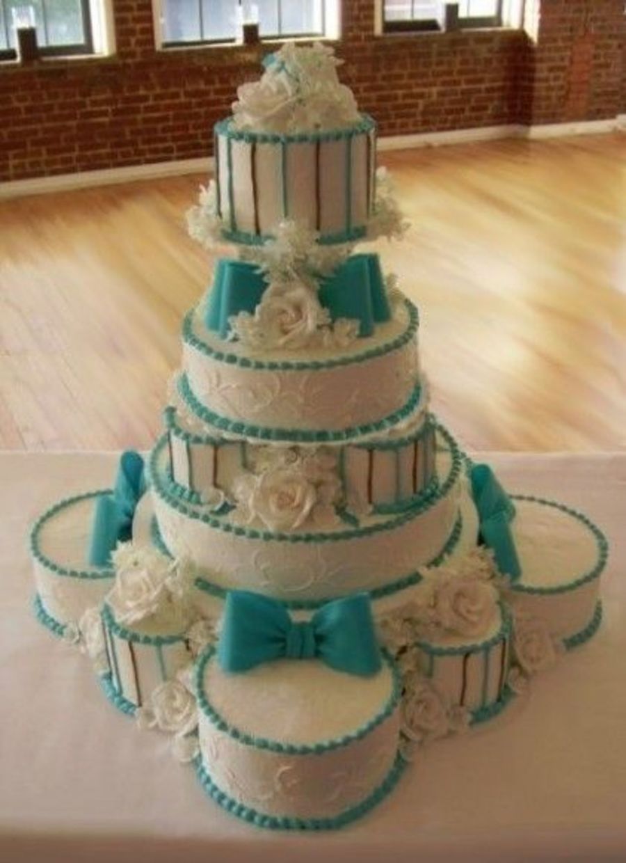 wedding for 200 guests 14 tiers made up of 3 layers each Gumpaste flowers and bows 2 hour set up whew!