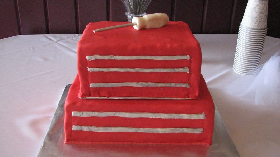 This was the grooms cake for my sisters wedding. It was chocolate fudge cake with whipped chocolate ganache.