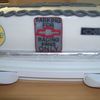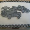 fondant/gumpaste decorations dusted with pearl dust. all writing and outlines were done by using fondant/gumpaste run through a clay extruder.