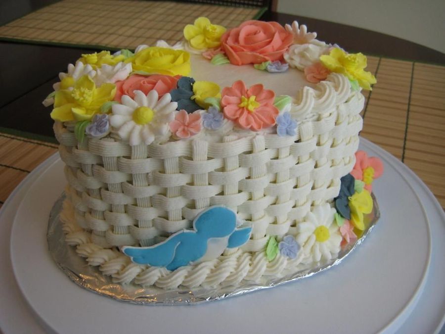 Like the many other cakes on here. I used butter + shortening plus regular vanilla which gave it a yellowish tinge. I'm a guy and not into flowers but this turned out pretty well.