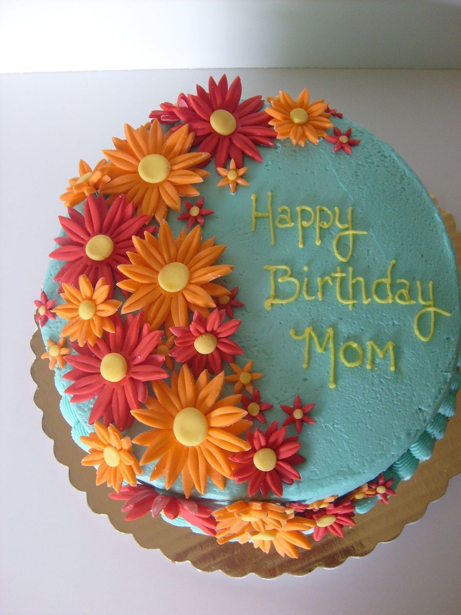 This was my first time making fondant daisies. The client wanted red, orange, and aqua to match the birthday theme. Wasn't sure about this combination but this is what I came up with and was pretty happy with it when I was finished. Dark chocolate w/ cherry filling, and buttercream frosting. Thanks for looking!