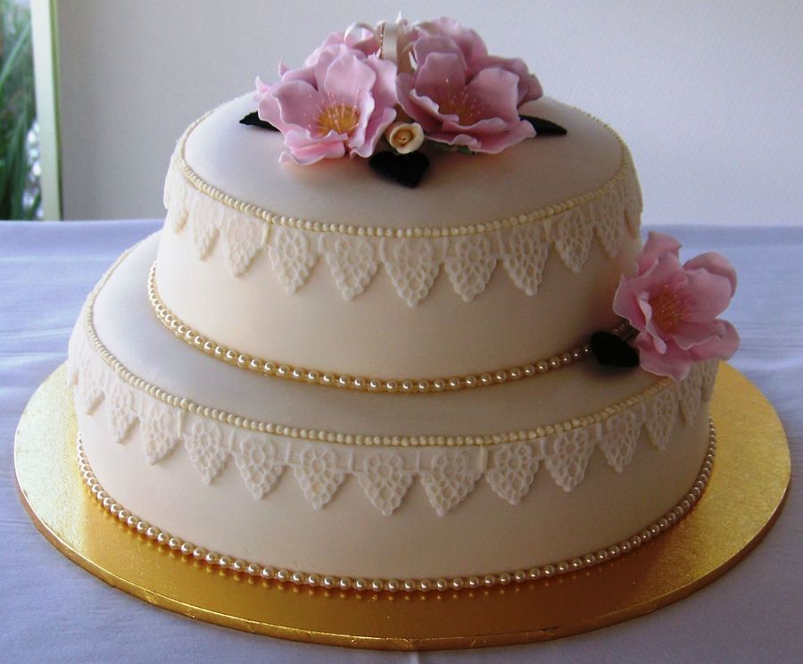 Fruit cakes iced in fondant. I bought a lace cutter from spotlight , putting it on the cake straight was a bit hard, it kept wanting to stretch, so I had to let it dry a bit first. Very happy with end result.