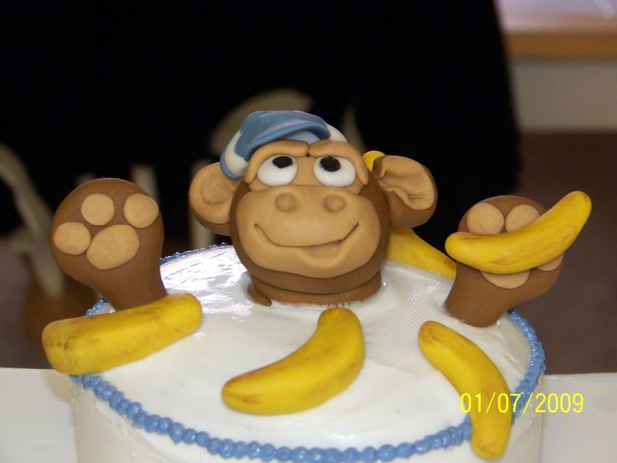 smash cakes I made for twins 1st birthday - monkey head, hands, and bananas are all fondant - icing is bc. Thanks for looking!