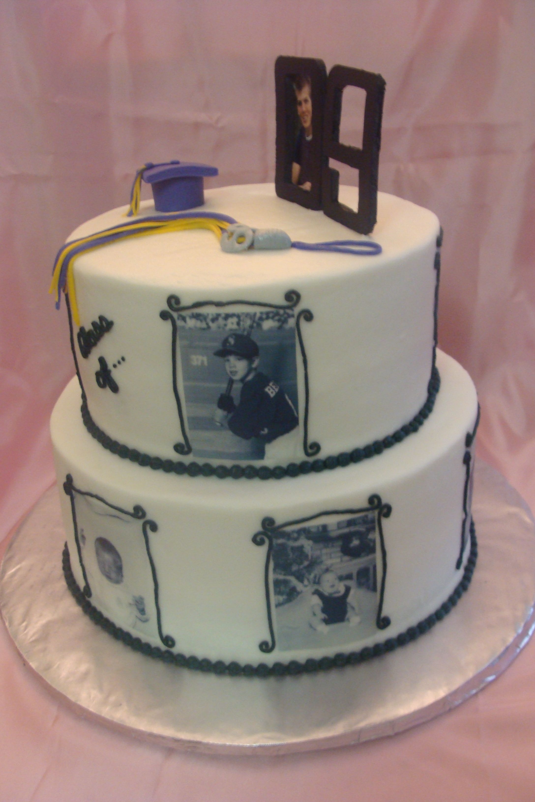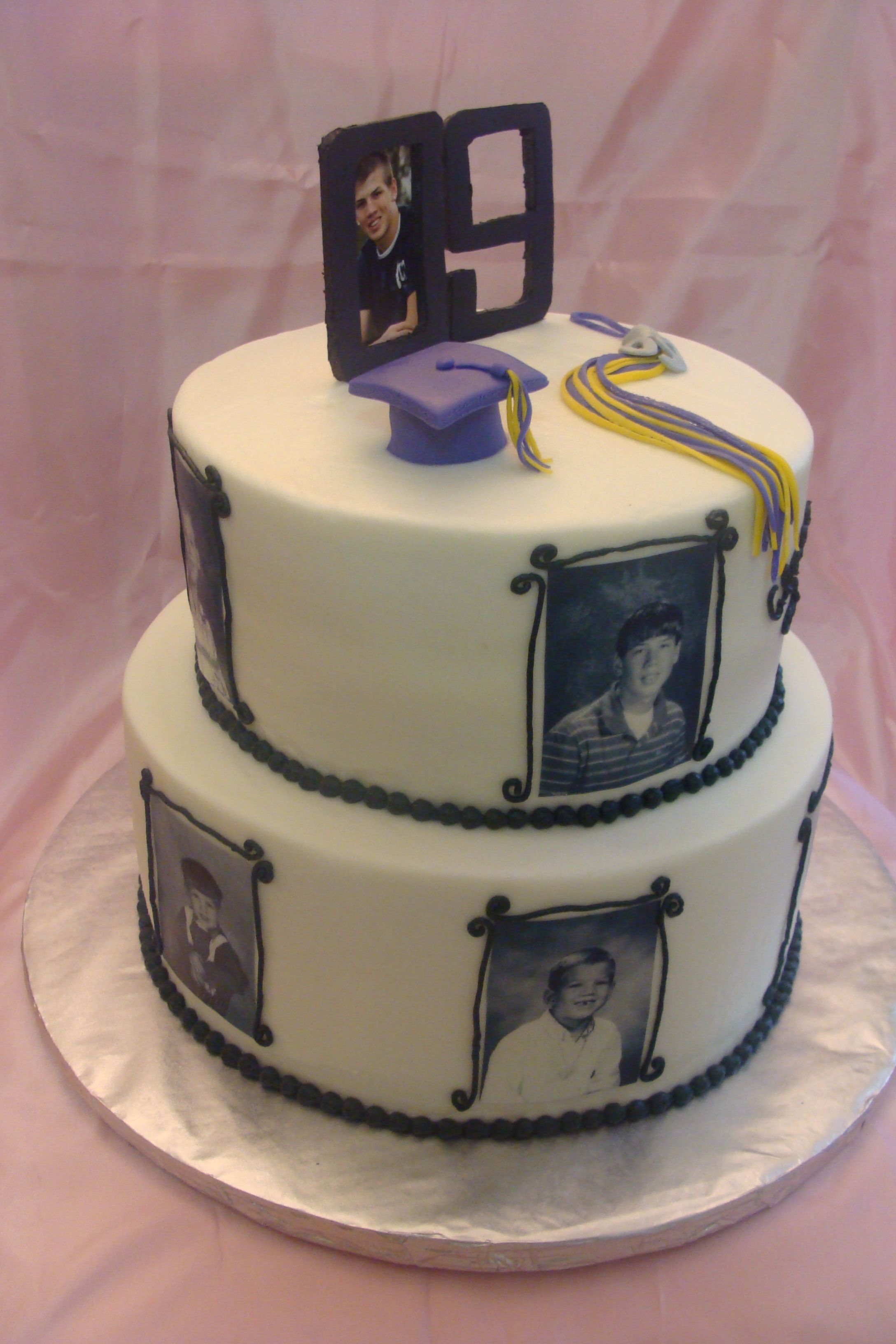 This was my nephews graduation cake. All of the images are edible images. The tassel and hat are fondant, and the 09 is made from foam board (I was afraid if I made it out of fondant it would be too heavy.
