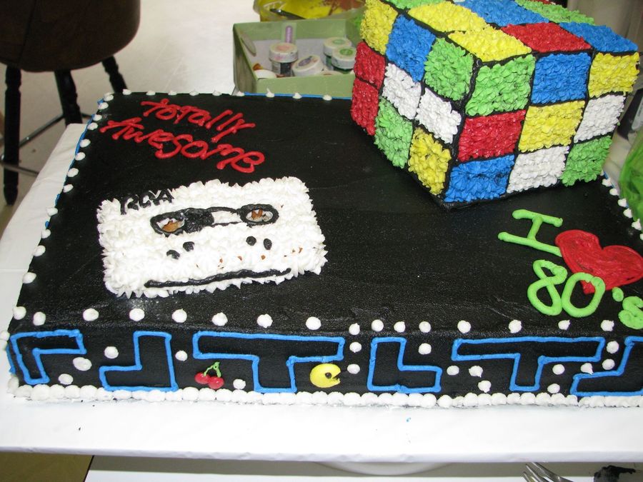 Found the ideas for this cake on here. Loved the cake except for the cassette tape and please excuse the mess in the background (I was rushed as my friend's husband came way too early to pick it up). Fun cake to do. All done in buttercream.