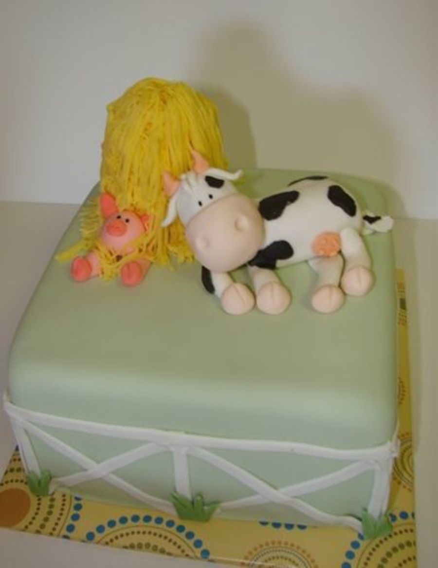 This was my first attempt at making a cow, I used aine2's figure for inspiration. I used rkt and mmf for the figures, the cake was WASC covered with mmf. It was made for a cattle farmer for his birthday.