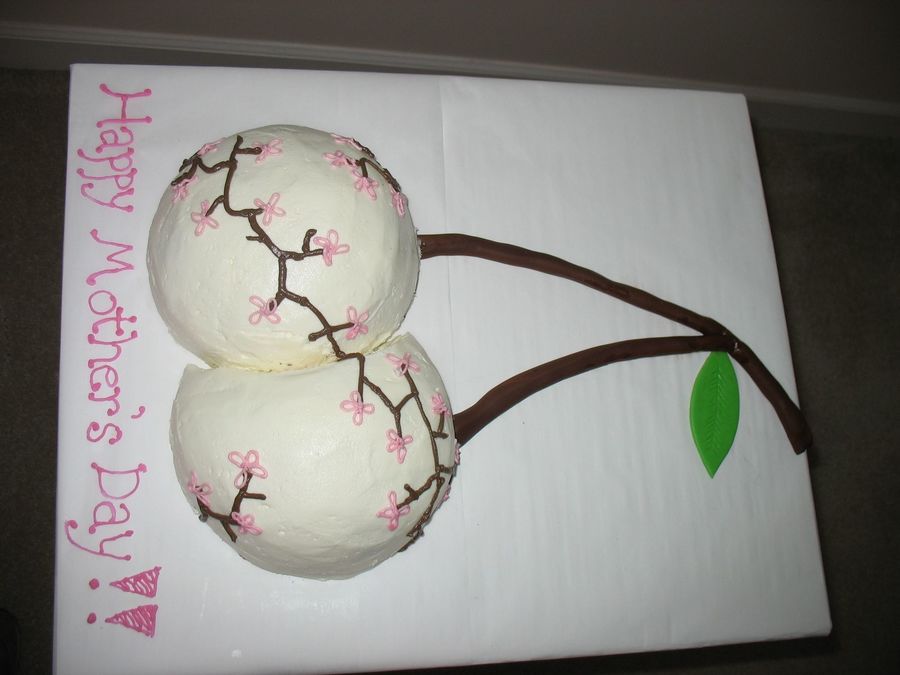 This is cherry chocolate cake (my mom's favorite) so I stuck with the cherry theme and put some cherry blossoms on it.
