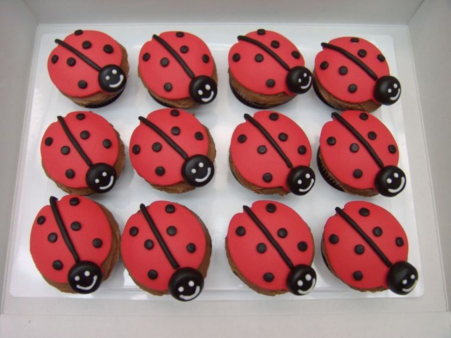 chocolate cupcakes, with chocolate buttercream, topped with fondant. I used the ladybug cookie cutter to cut the fondant.