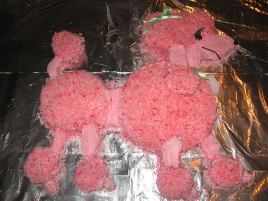 I used a couple of round pans and then cupcake tops for the "puffs". Then colored coconut for the body and put a little pink ribbon on top and used construction paper for the eyelashes and mouth.