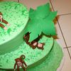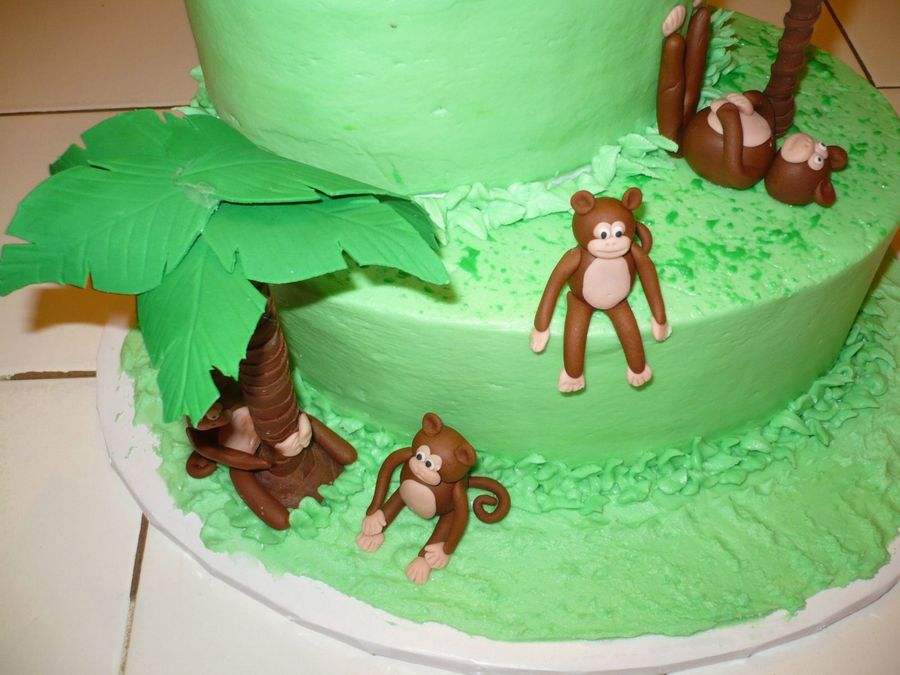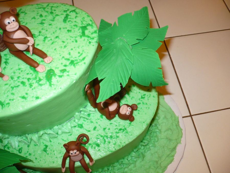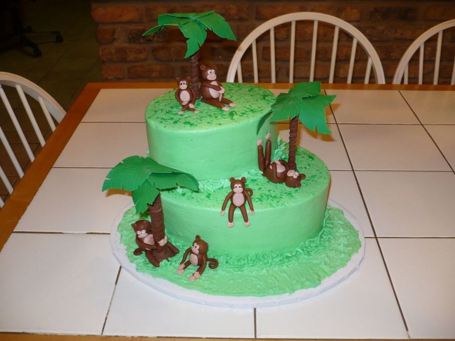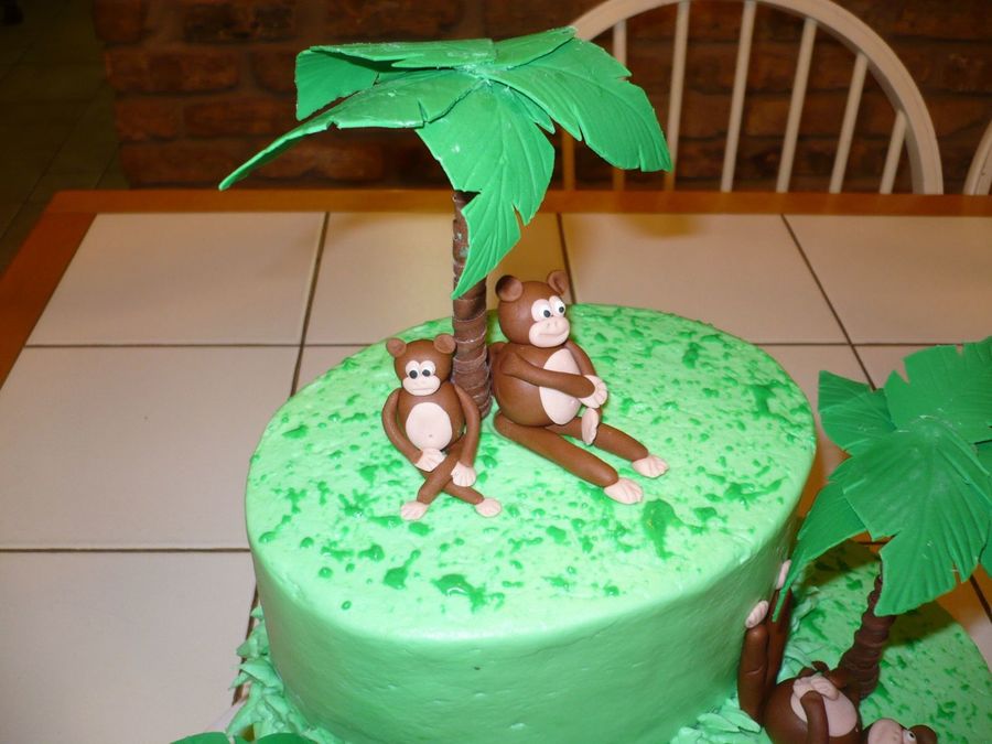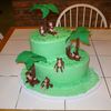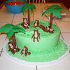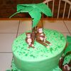This is a cake that I did for my nephew's birthday. It is the smallest and next size up of the oval pan sets. The palm trees started with a dowel, were wrapped in fondant and the leaves were made with gum paste and dried in the largest Wilton flower former. I ended up gluing the leaves together with candy melts. The Monkeys are fondant with gum tex mixed in.