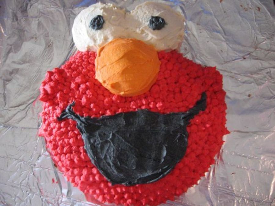 Pretty simple. Round cake pan plus cupcakes for eyes and nose.