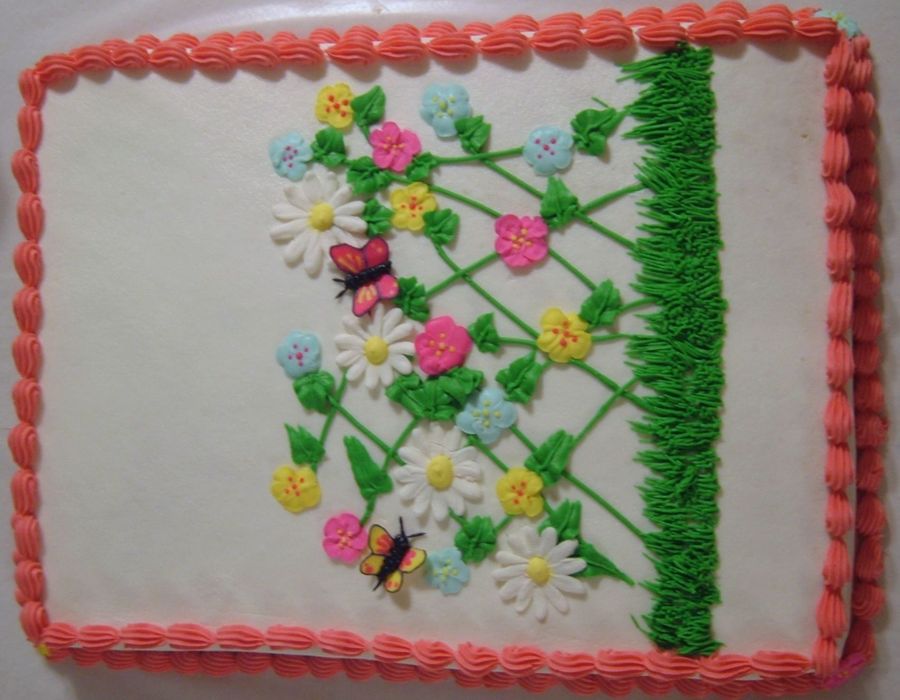 Cake donated to Shepherds Arm Mission.WASC with buttercream.Flowers & butterflies are royal icing.