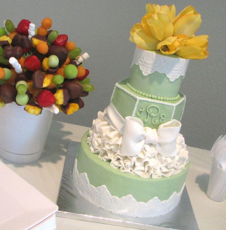 Designed and made for my sister's bridal shower; I love having complete creative reign to try something different, so I did ruffles and used my lace molds again (love those things!).