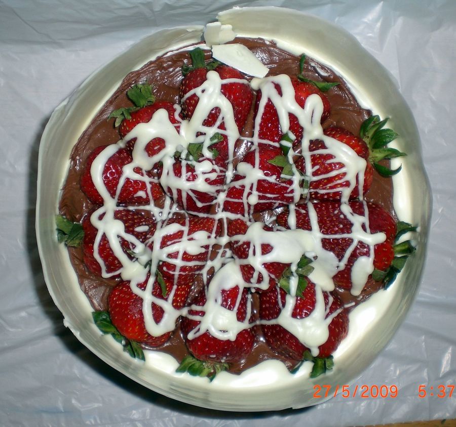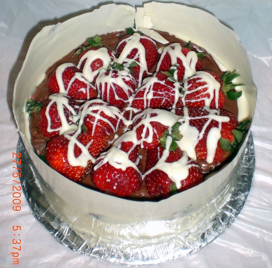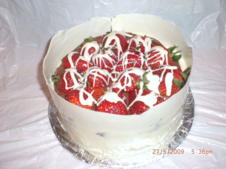 Wrapped in white chocolate with strawberries n white chocolate drizzel