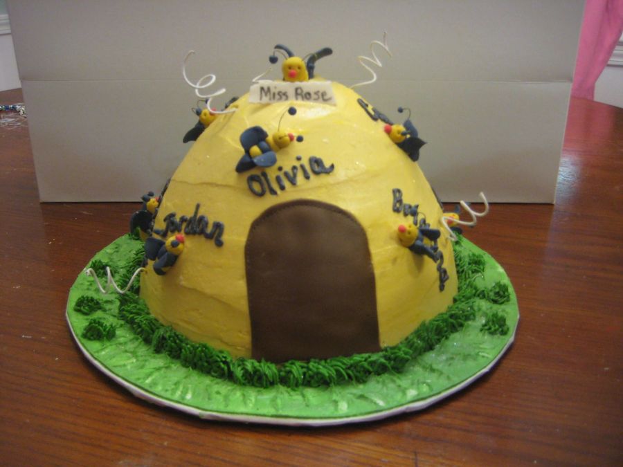 This bee hive was for my daughter and her classmates as they graduated K-5. Each bee was made in advance with rolled fondant. Her class was known as the honeybees.