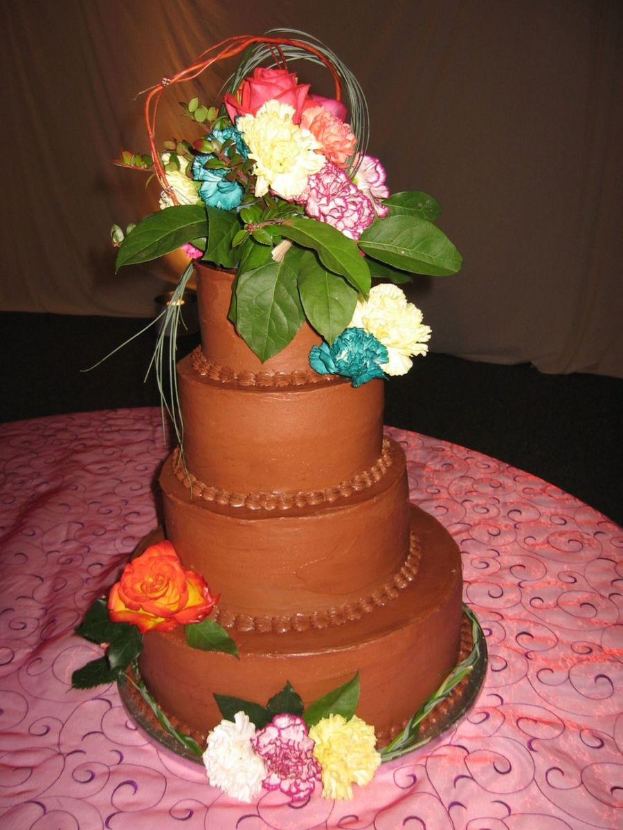 This cake was an exact duplicate of the wedding cake...only in chocolate. So chocolate cake, pink vanilla filling, chocolate bc. This was one heavy mother of a cake!!