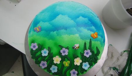 The petals are made with a giant rose tip and the center is piped using a grass tip. The cake itself is a 8" round.