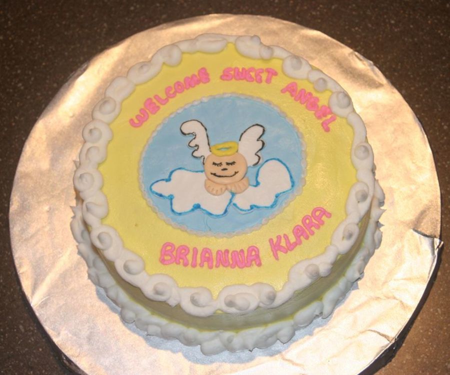 I made this for a mom-to-be in my bible study group. BC icing with fondant angel and clouds. Used #12 tip and bc to make cloud borders. Thanks for looking! :)