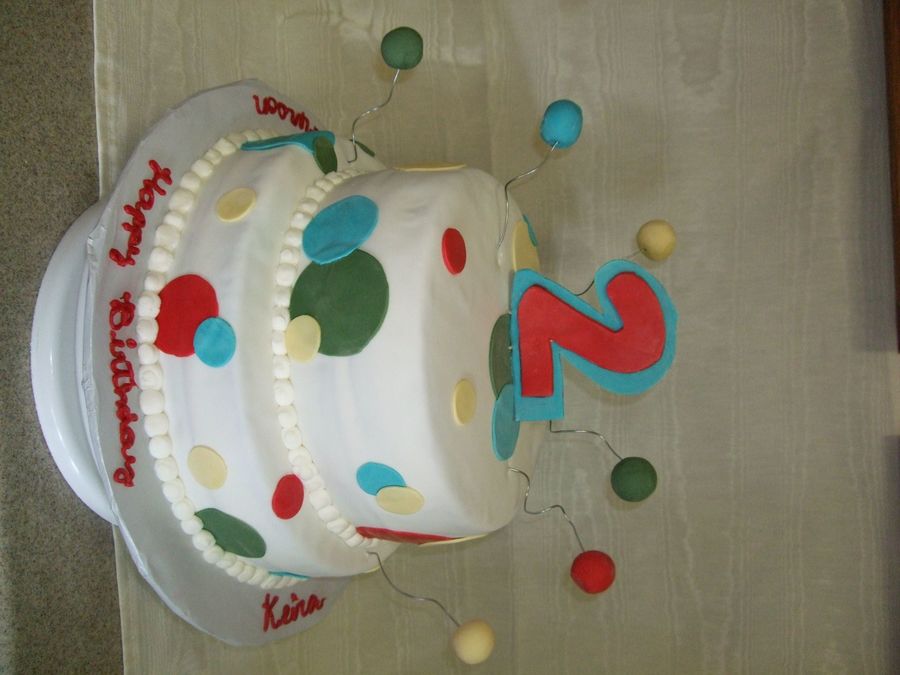 This was made to match the invitations for the party- it was a bubble theme, so they wanted dots and 'bubbles'. I wasnt brave enough to try blowing sugar, so fondant it was!