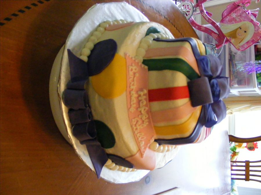 This was for an Elmo birthday, and I made a fondant Elmo topper for it but forgot to take a picture of it with the topper on it :( Buttercream with fondant accents.