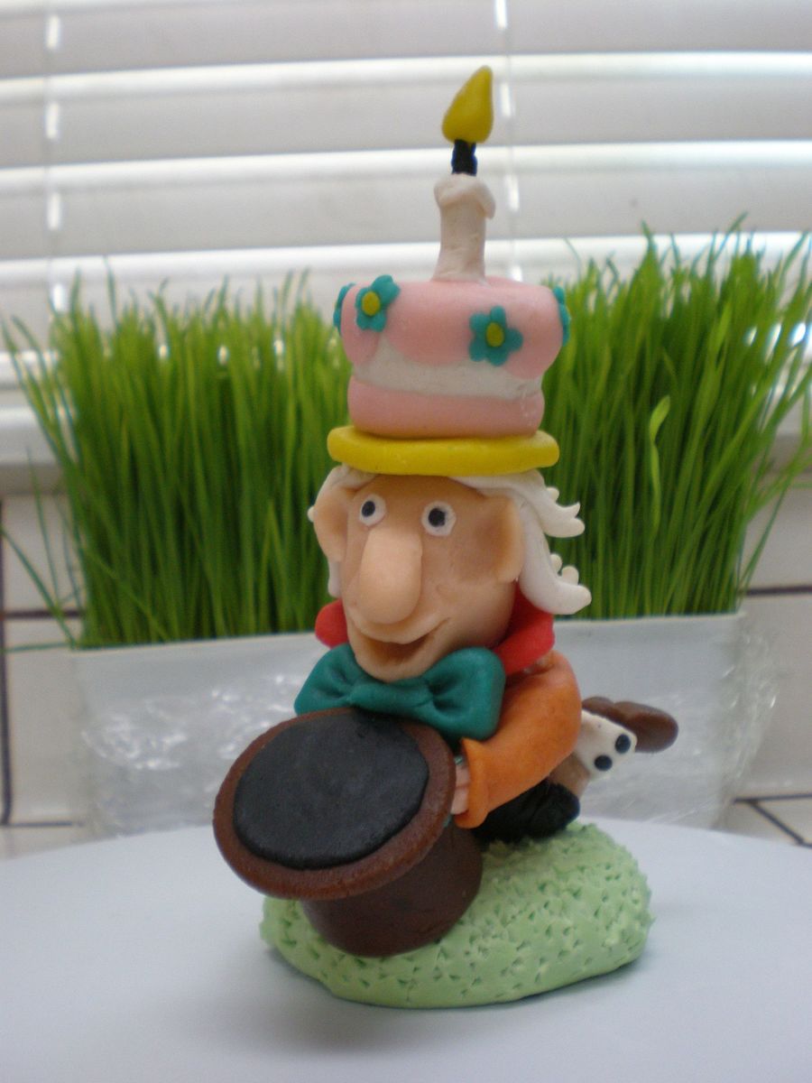 This was a project for my pastry culinary class... We had to make a character from Alice in Wonderland out of marzipan. I chose to do the Mad Hatter at the tea party when bows & removes his top hat there is a fully decorated cake with a lit candle!