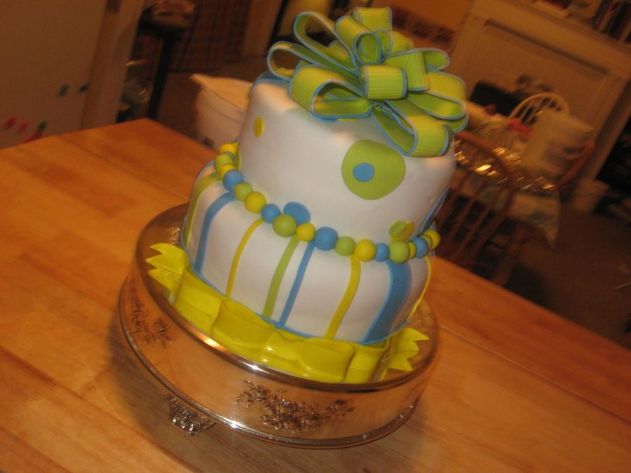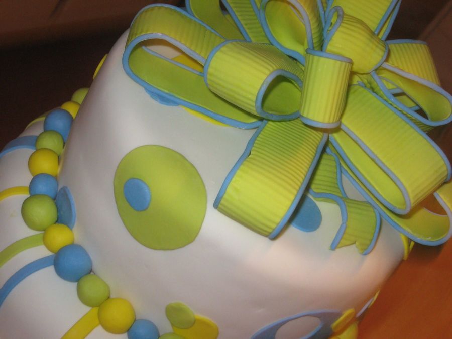 Colors match ribbon used for shower decorations. Finally tried the edged ribbon for my bow topper. Took about an hour just to trim the edges, but I love the look!