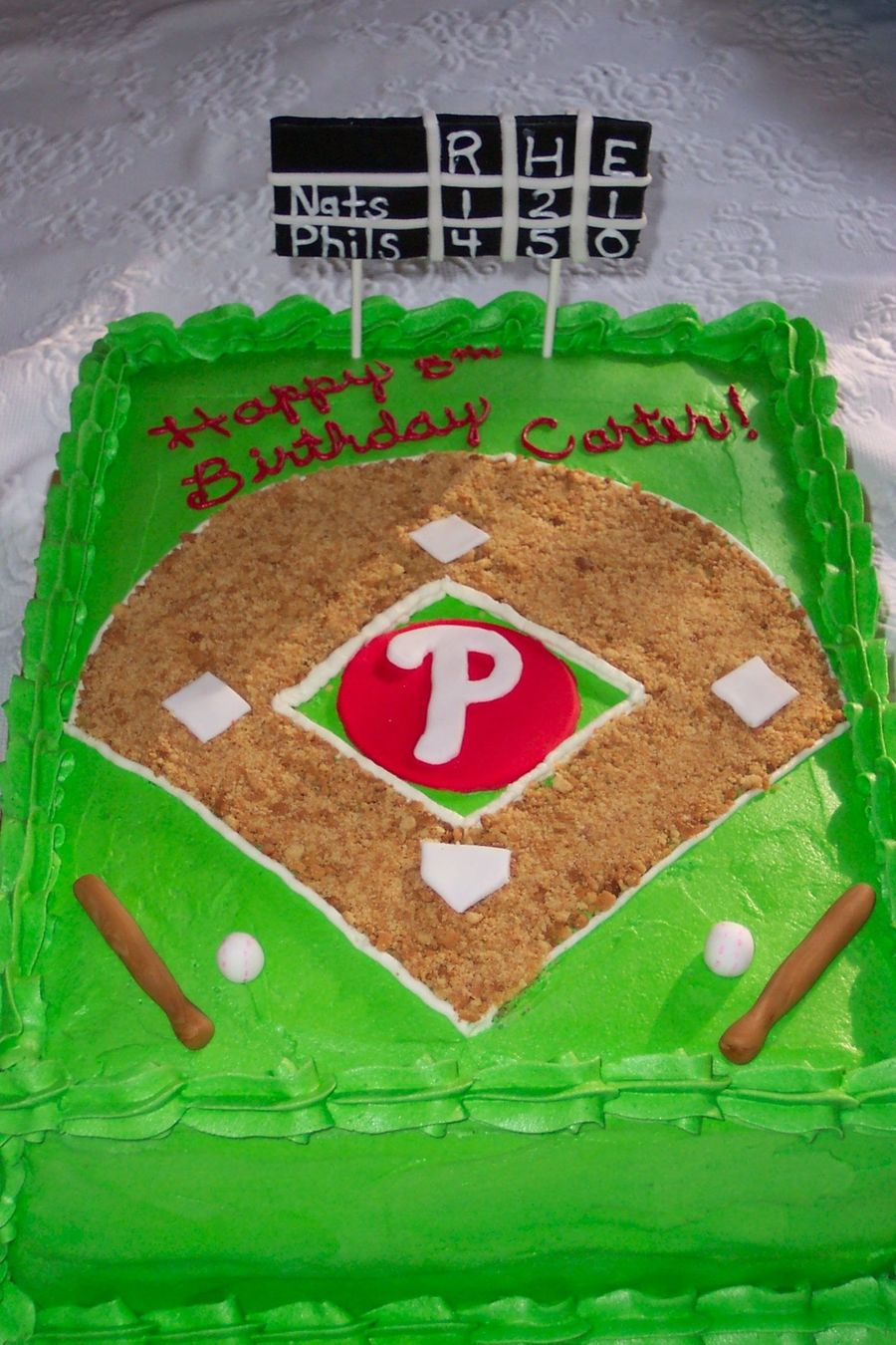 This cake actually went to the Phillies Stadium for a birthday party. The child's father is Director of PR for the Phillies. How nervous was I??? He said it was fine to make a fondant logo.
