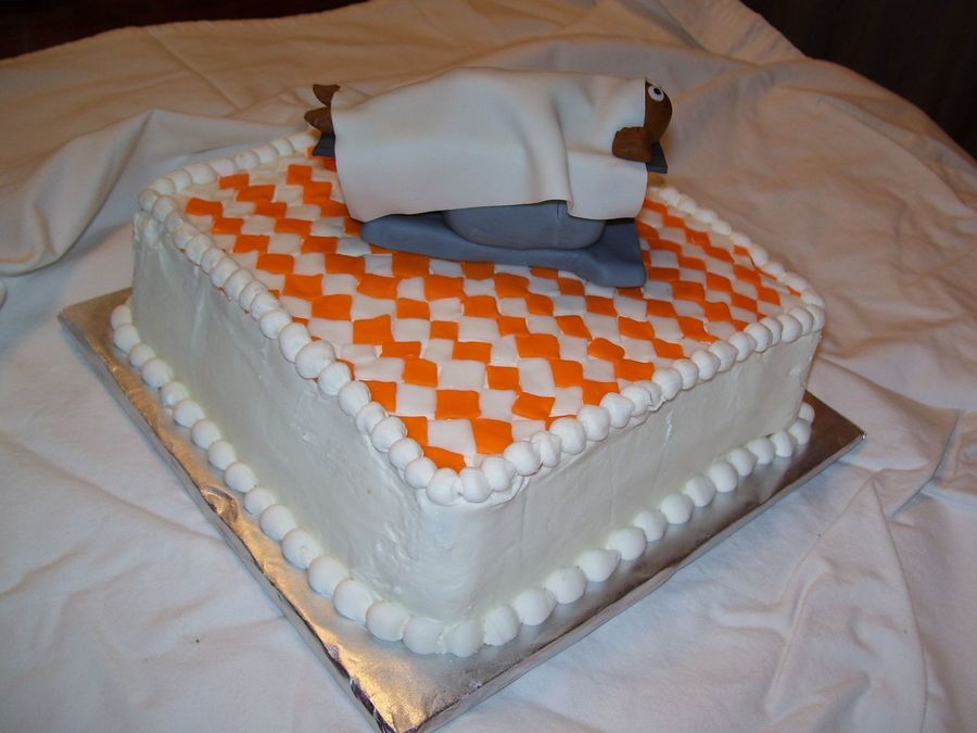 The guy who's birthday this is sales surgical tables for a living. I tried to copy one of the tables he sales. I put the brand name on the table. He's also a Vols fan. The cake is vanilla with french vanilla pudding filling and bc icing. I made everything else with fondant and gum paste.