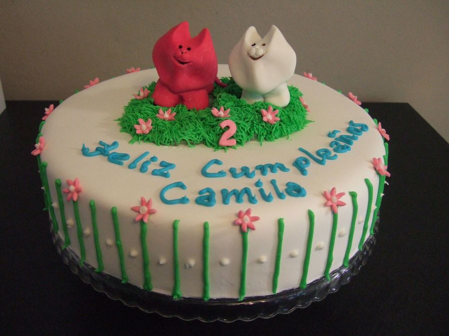 MIO MAO MIO MAO LALALALALA VANILLA CAKE WITH BRANDY SYROP. COVERED WITH FONDANT AND THE MIO MAO CATS FROM BABY FIRST TV ARE MADE WITH FONDANT!!!
