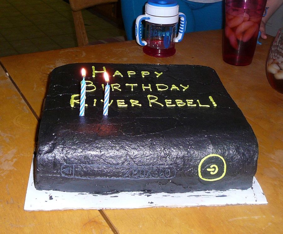 I made this for my uncle's birthday a few months ago. His gamer tag is RiverRebel. He loved it and was so surprised that I made something for him. It is chocolate box cake with chocolate buttercream.