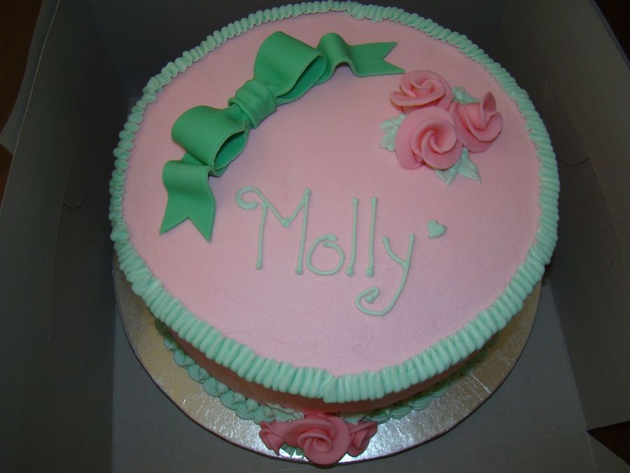 Yellow cake with BC. Fondant bow, Duff roses. TFL!