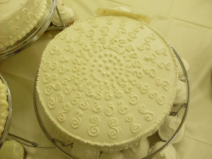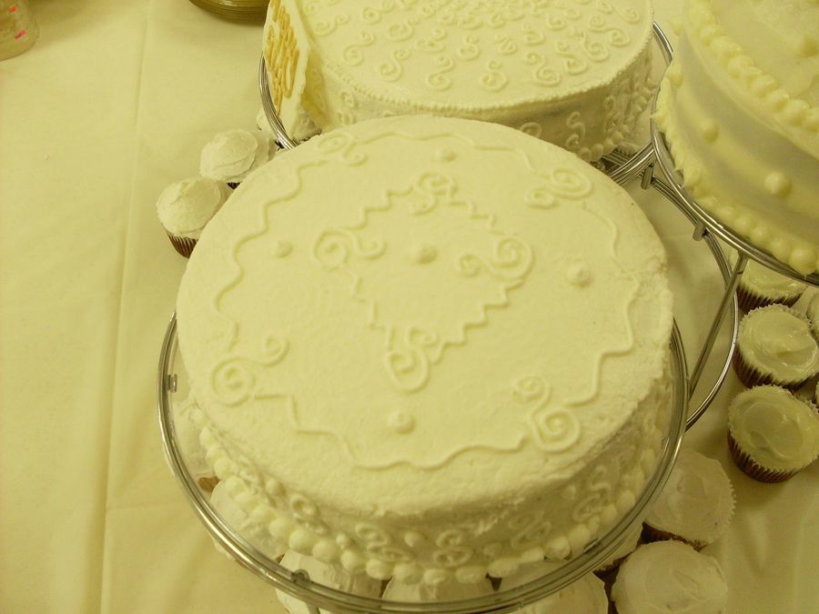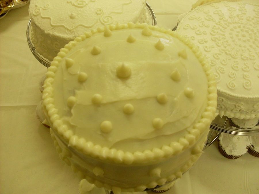 The 10 inch is a milk chocolate cake with BC, the 9 inch is a vanilla cake with BC, and the 8 inch is a carrot cake with Cream Cheese frosting. They wanted a variety, so the cake stand I have worked out perfect. I made cupcakes for all of them in the different flavors too. TFL