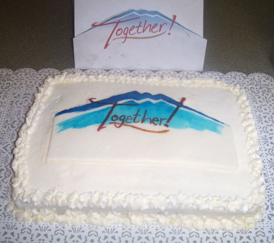 A vanilla cake with buttercream frosting to celebrate our church's first year of our together campaign. The logo was hand painted on fondant.