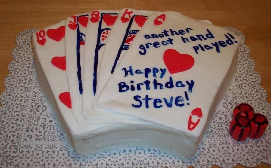 Fondant on top. Hand painted royal cards. Fondant chips on board