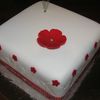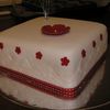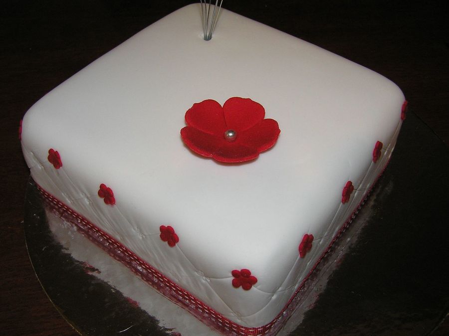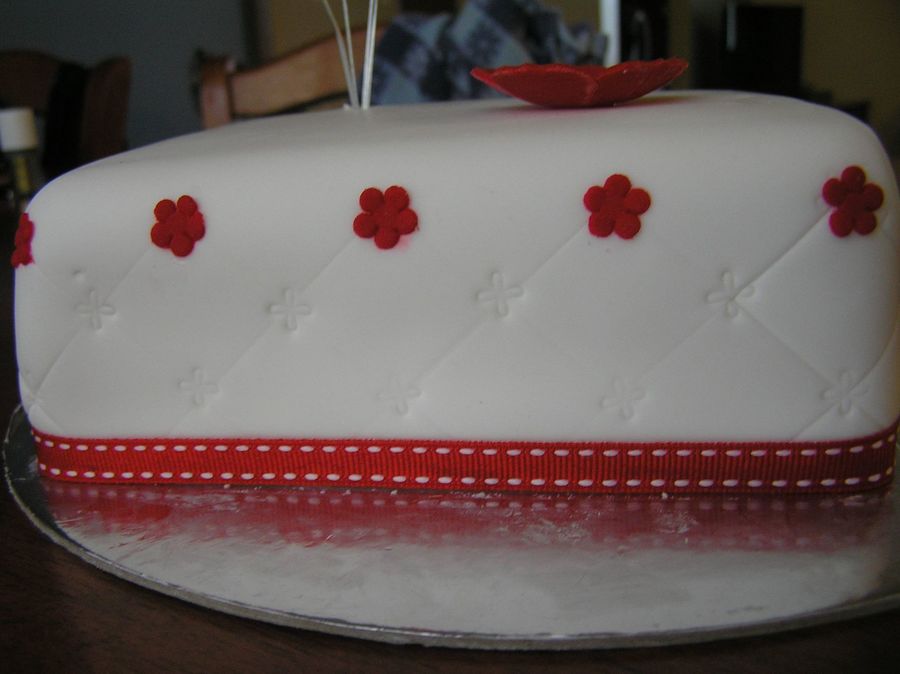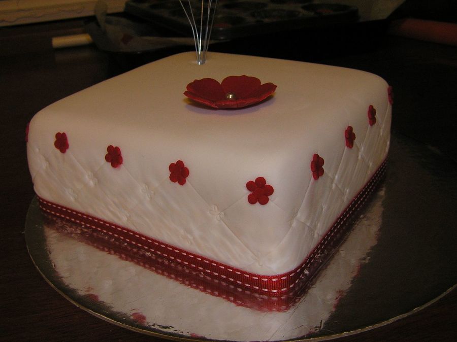 Practice cake for sisters engagement. Have only made one fondant cake before so wanted to practice smoothing fondant, applying ribbon and applying pattern. Cake is fruit cake with layer of marzipan under fondant.