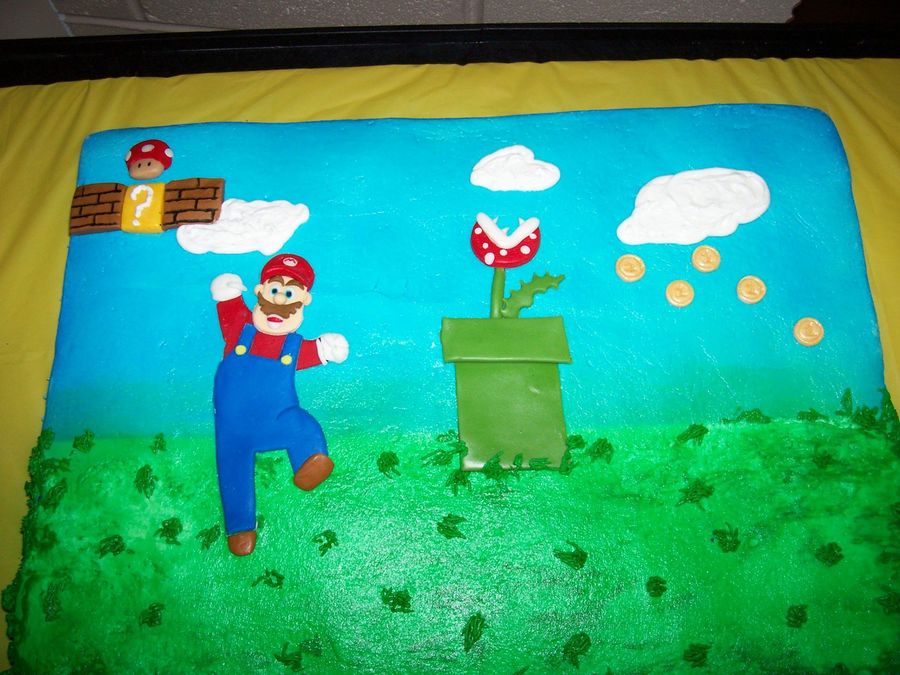 The client that wanted this cake did not want a 3D cake, so we make a 2D cake with Mario and other accents out of MMF.
