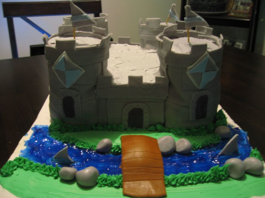 This is a castle Cake I made for a school dance, the theme was Royalty. It was all fondant, water was piping gel. It was my first castle cake, next time I think I'm going to have to do the columns separate, the fondant didn;t come out too good.