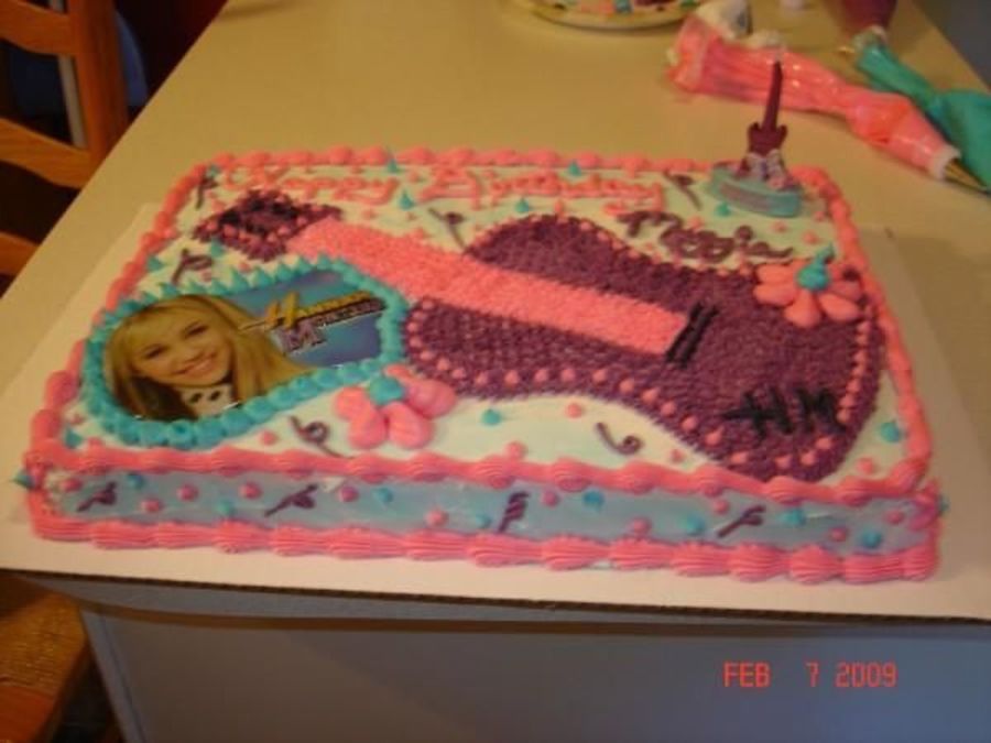 This was my little girl's birthday cake and she loved it. I went to Walmart and got the Hannah Montana cake set out of the bakey it was only $5.00.