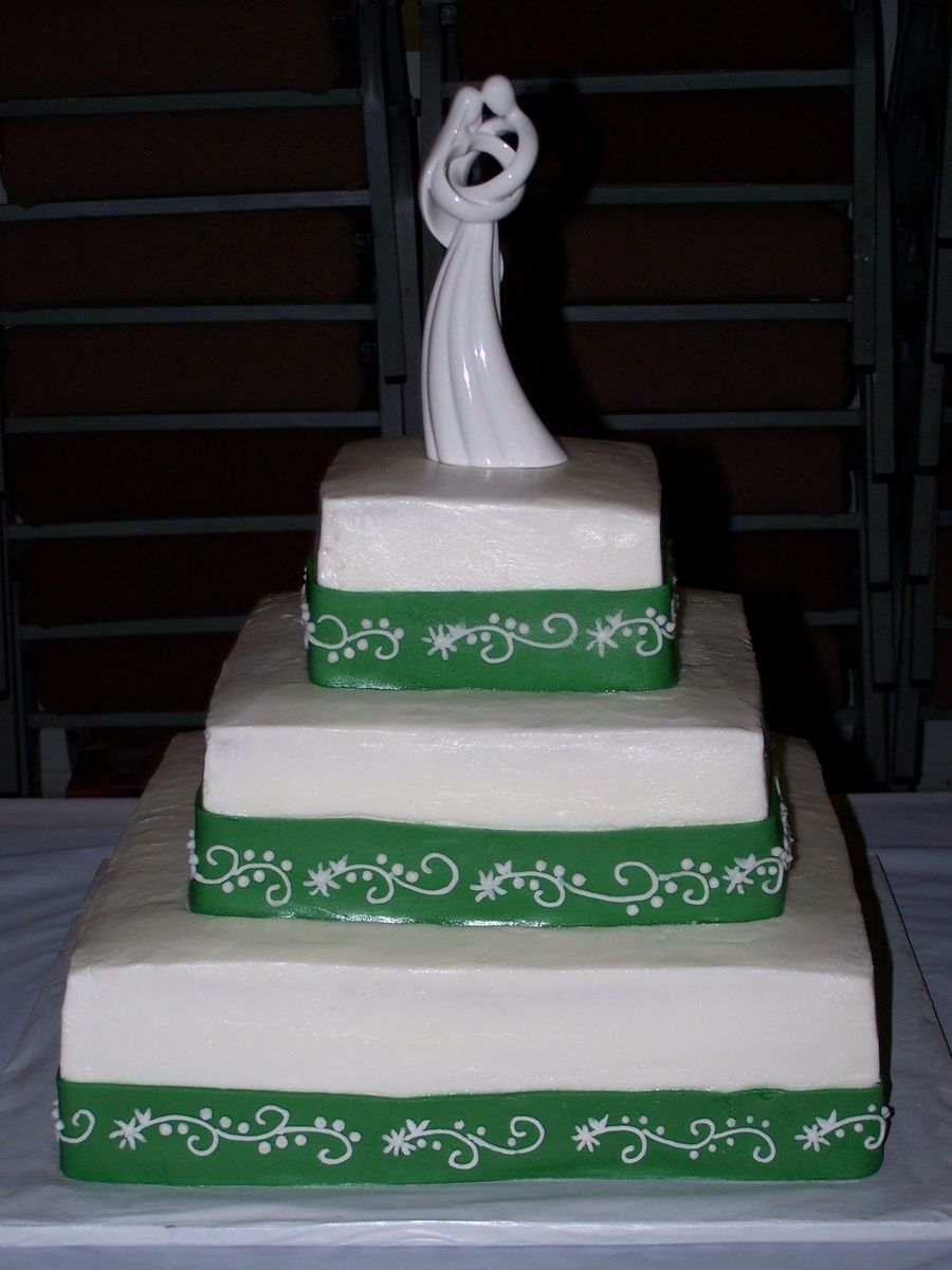 Green fondant ribbon was decorated to match design on wedding dress