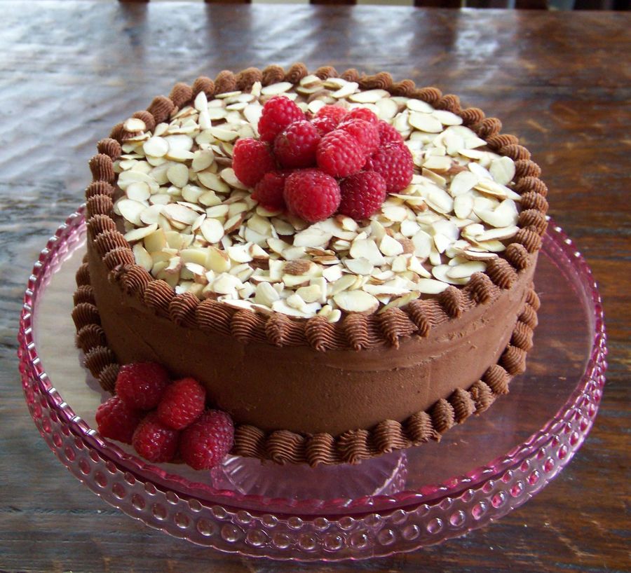 Chocolate b/c with fresh raspberries and almonds