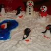Made this for annual family Christmas - Pap and Grammie were the snowmen with 11 penguins - one for each grandchild. Choc. cake w/ buttercream. Fondant figures.