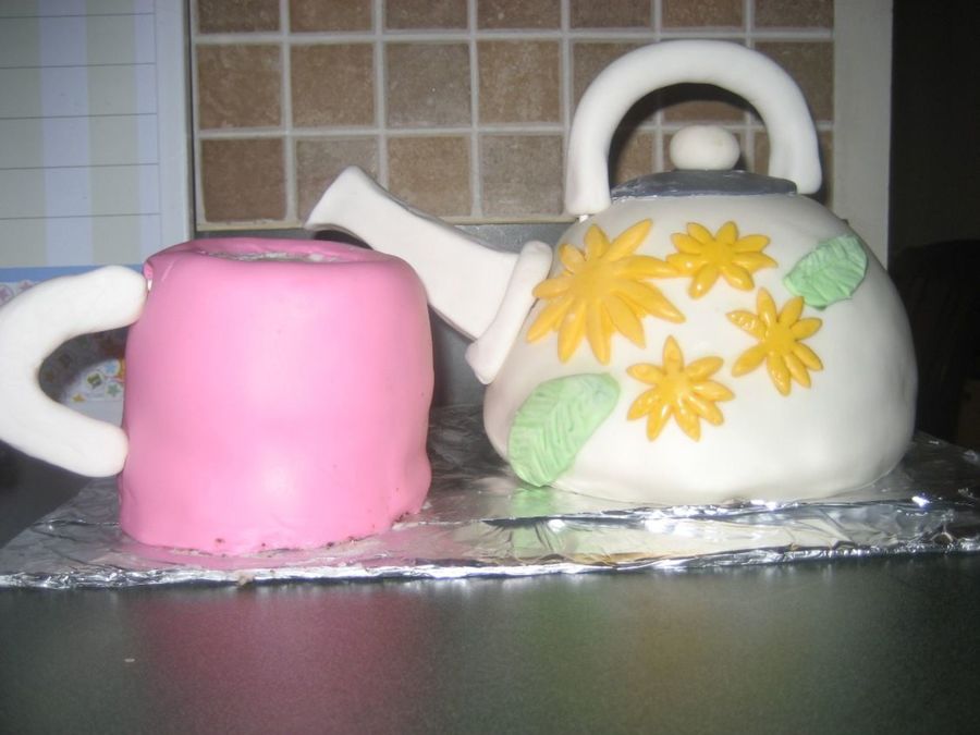 Chai Tea cake filled with coconut buttercream and fondant, Andeas Dream Mug with Mint buttercream and fondant. I had big plans for this cake but ran out of time. The mug totally lost it's shape too. Totally disappointed. Ah well, I think this is my 5th cake
