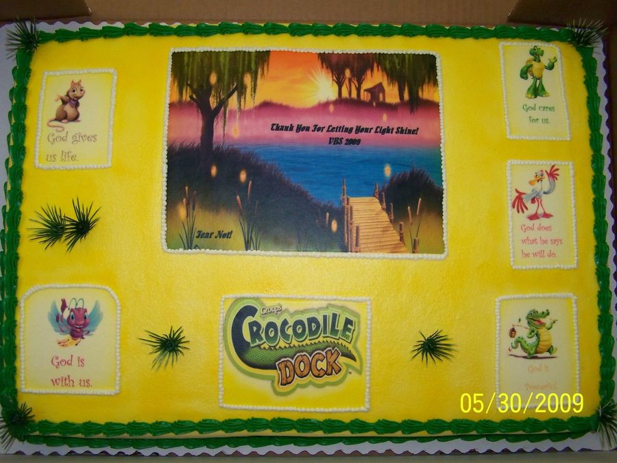 This is this year's Vacation Bible School theme.Crocodile dock. All edible images attached.