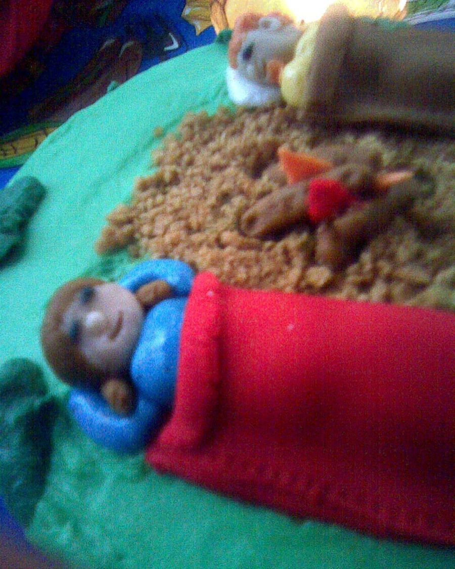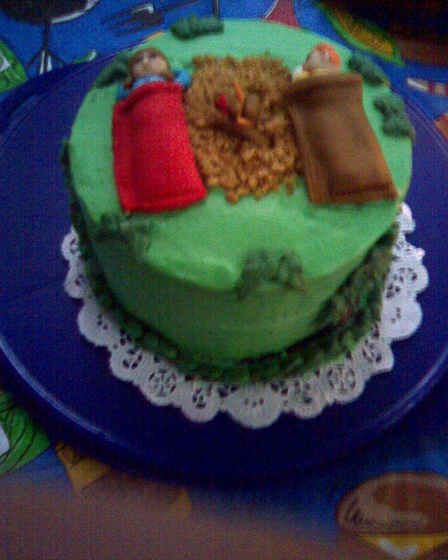 This was a small 6" round cake I made for a camping trip. It is buttercream with fondant decorations. Sorry the pictures arent' that great I had to take them with my cell phone