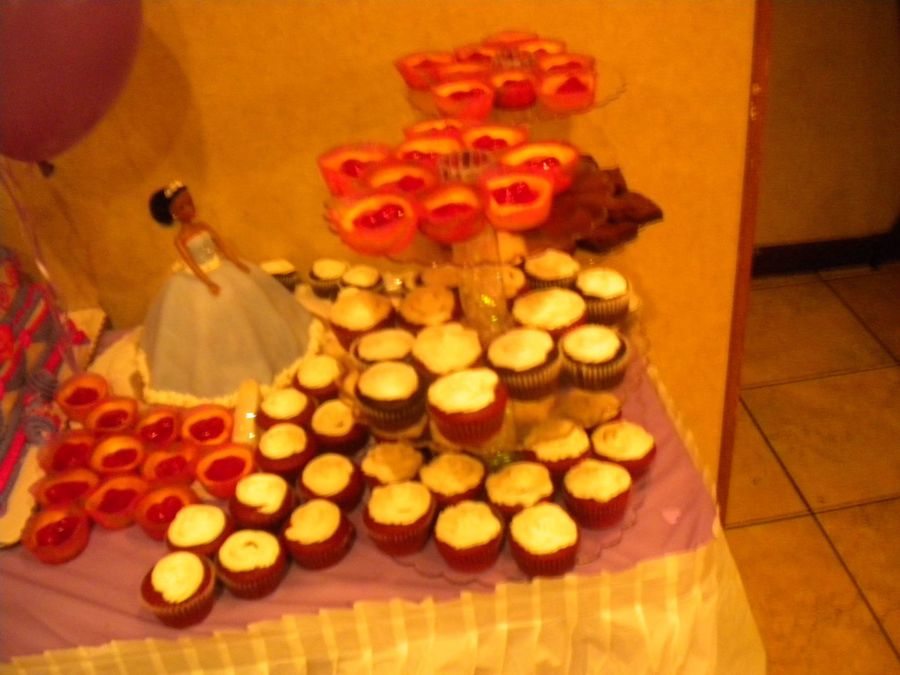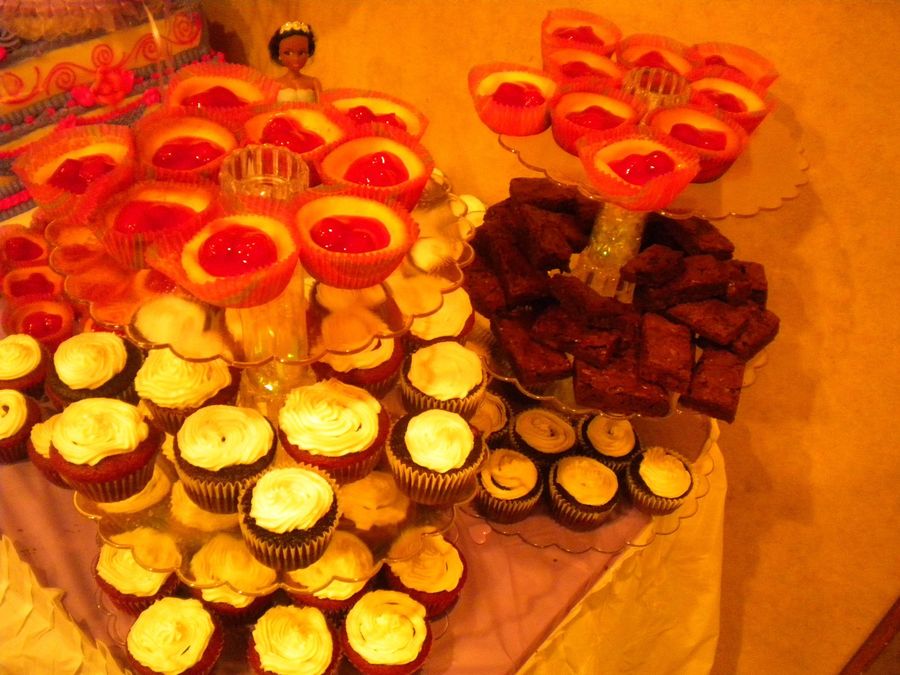 Mini cheesecakes, brownies, chocolate & red velvet cupcakes.