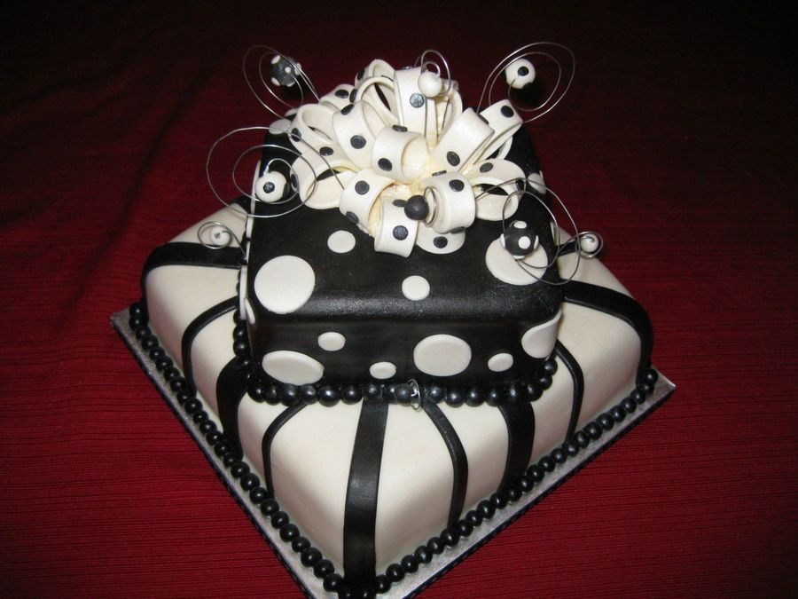 My first square cake. WASC with Buttercream icing. 10" & 6" Square Birthday Cake covered in mmf. The black colored mmf was easier to get than I thought! Bow is made from gumpaste.